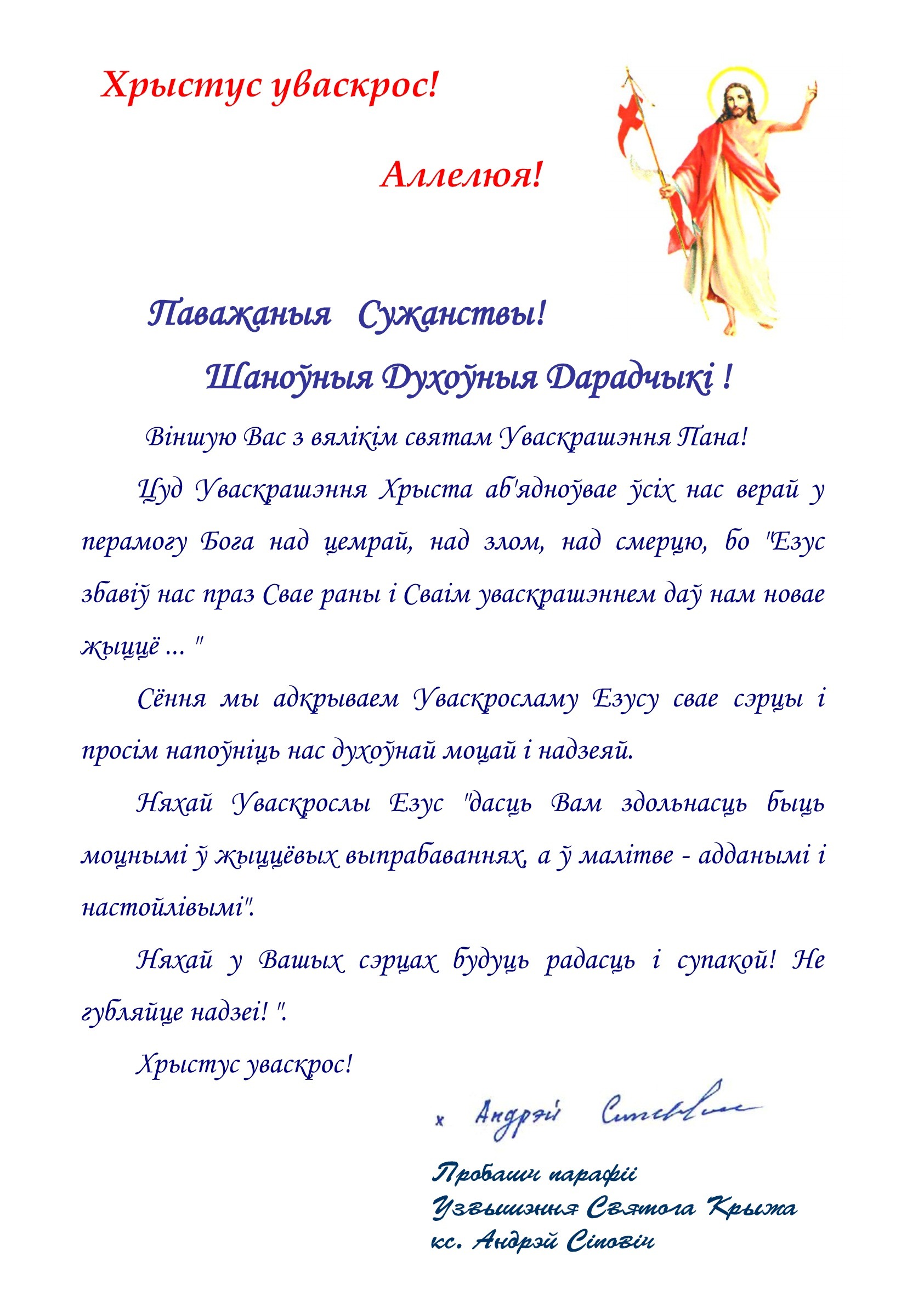 "... калі двое з вас на зямлі згодна папрасілі б аб чым-небудзь, то станецца ім ад Айца Майго, які ў нябёсах". (Мц 18, 19)
